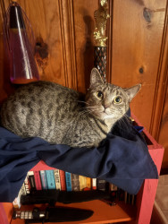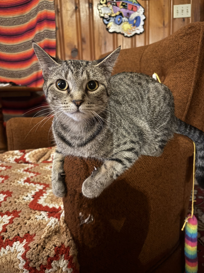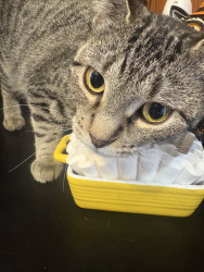 Learn MoreZoey loves playing with little pom pom balls and her crinkly snake. Her go to treat is chicken flavored temptations. But she also enjoys spinach, especially when she gets to pick her own leaf out of the container.