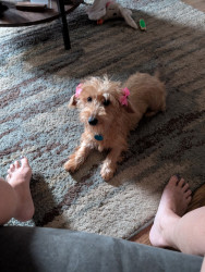 We. Rescued her in Aug. 25.She is the sweetest baby. Loves to play and she is so smart. She is a Dorkie, dauschund and Yorkie