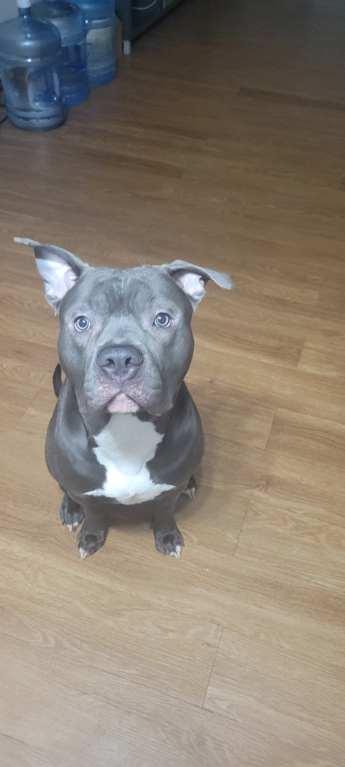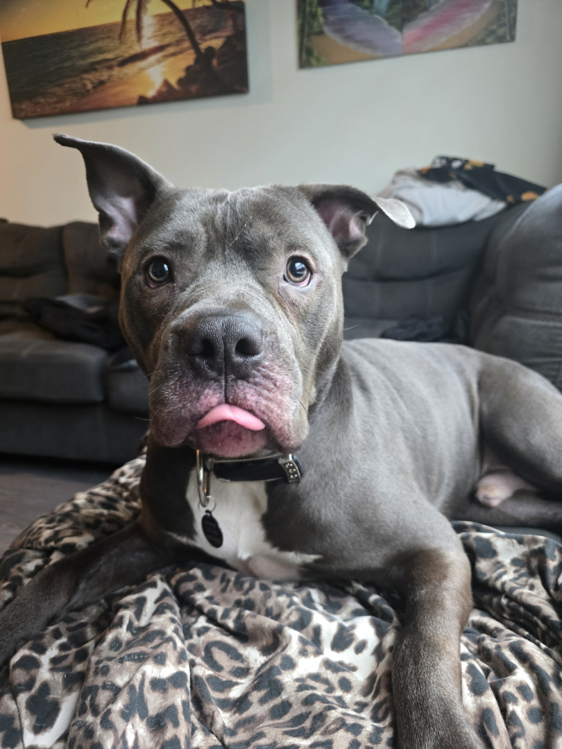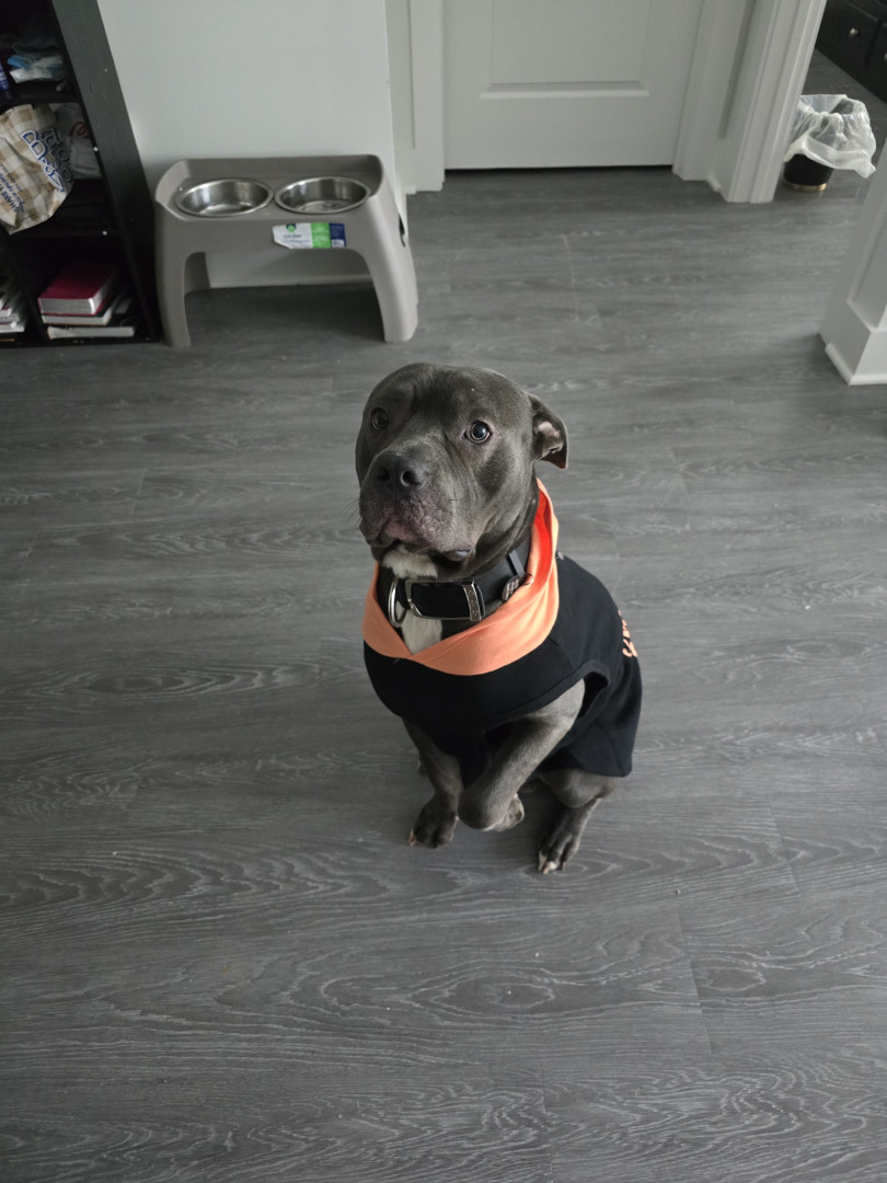 Cane corso Pitbull mix. Nicest and gentle dog you will ever meet. He loves human attention.