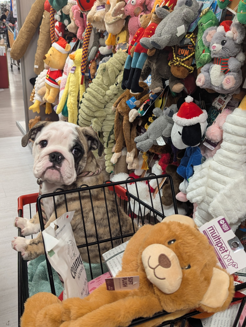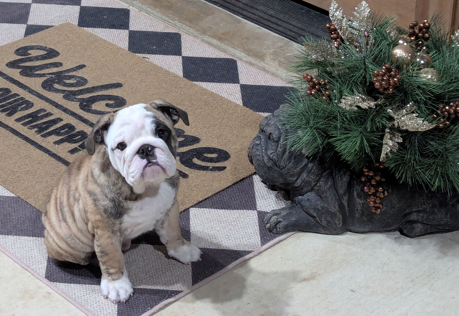 Zubi is a 13 week old bulldog. She thrives on love and affection...chaos and playing toys. She is curious and outgoing