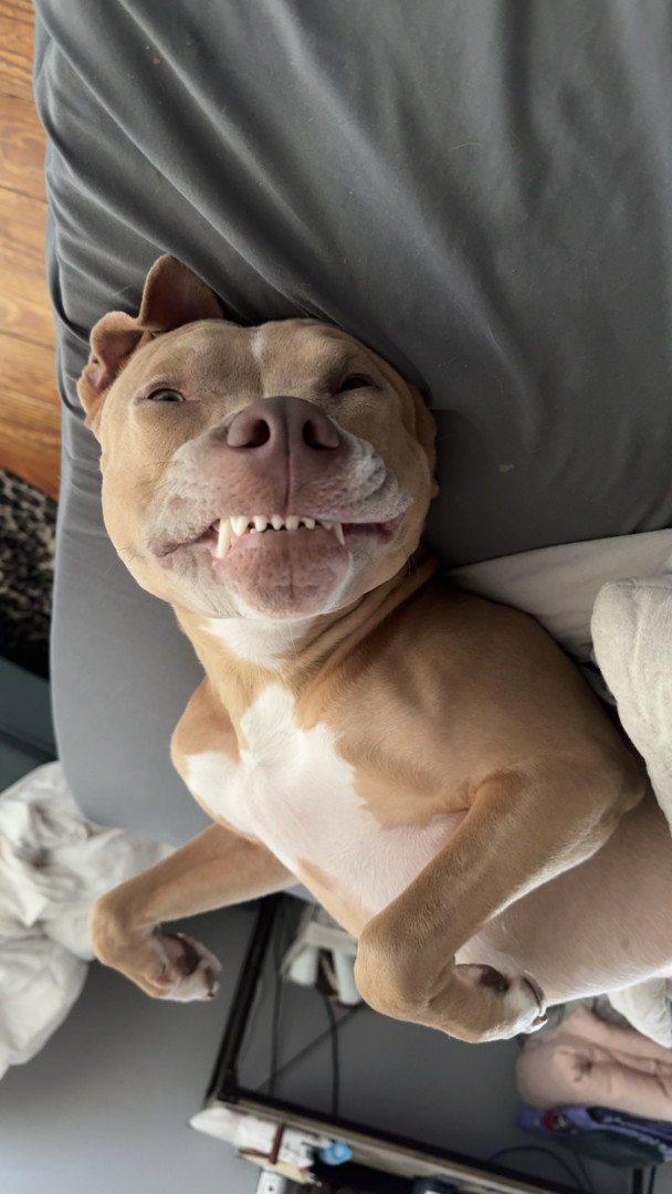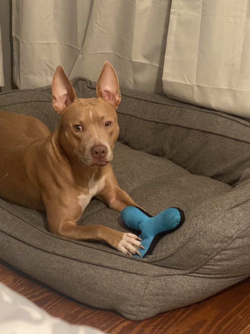 He is so strong and agile, he loves to jump up on our fence to try to chase the squirrels. He hasn’t caught a squirrel, but he is great at catching fly’s out of the air!