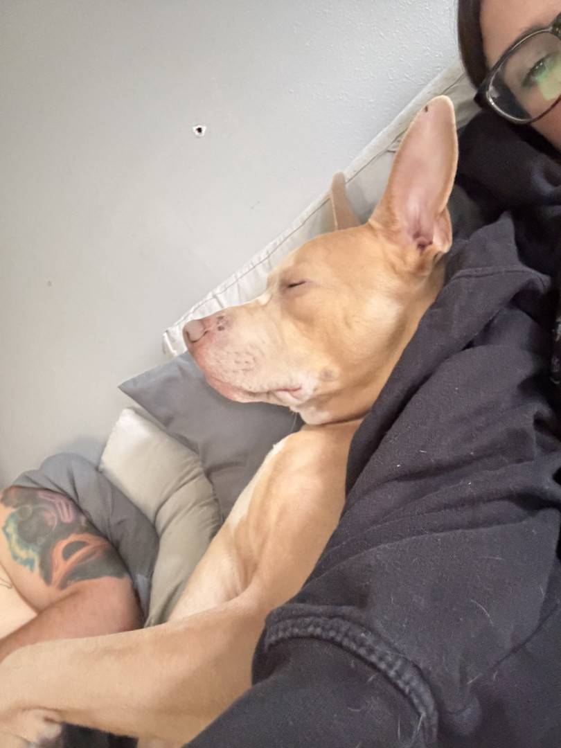 The sweetest boy there is! He is a big baby who loves to be tucked in and cuddle with his new human baby sister.