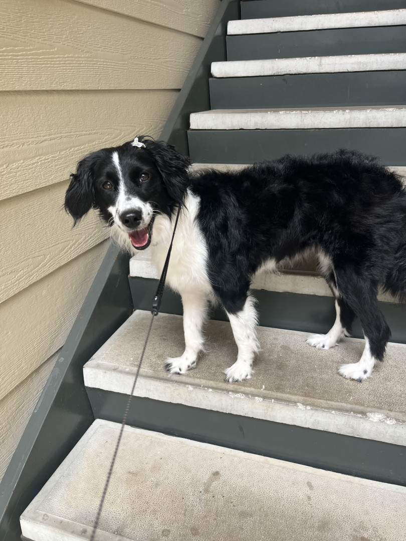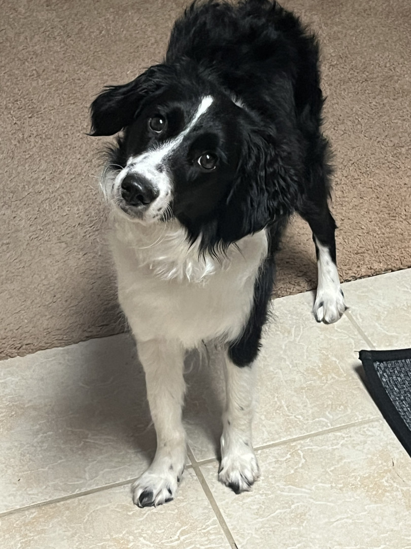 A smart, sweet black-and-white Border Collie mix with a playful heart 🐾🖤🤍